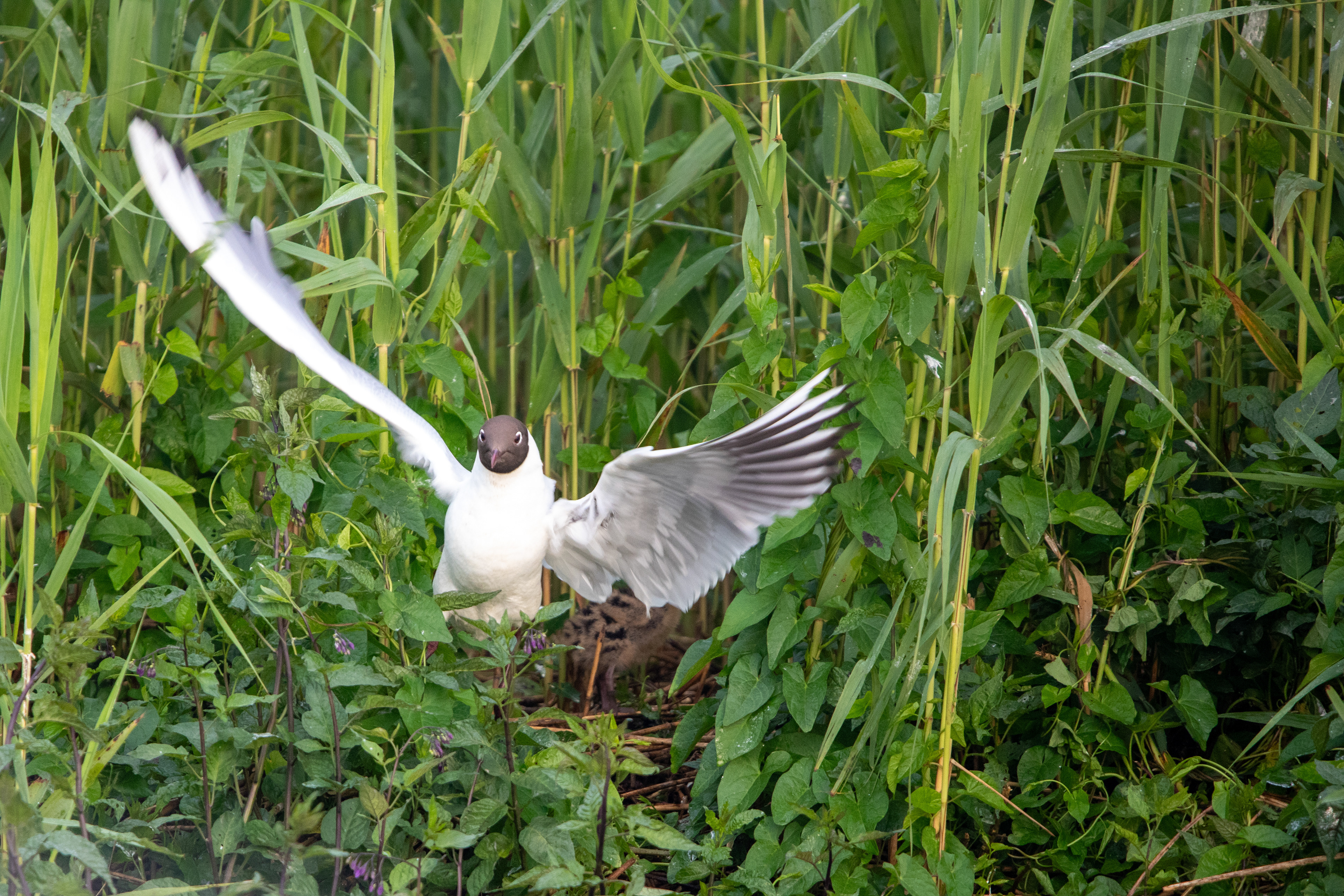 Zwartkopmeeuwen met een Kokmeeuw in de Nieuwkoopse Plassen